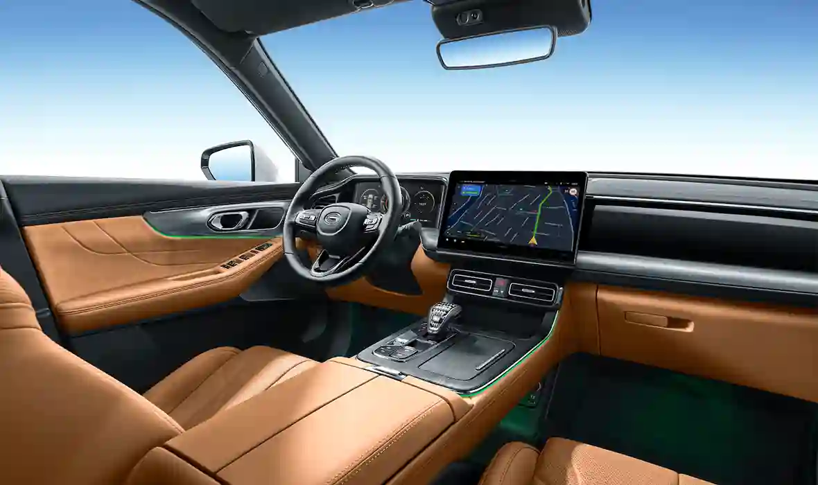Качество материалов отделки салона и уровень оснащения автомобиля полностью соответствует флагманскому статусу модели. Высококлассные материалы соседствуют с топовыми мультимедийными решениями и премиальными опциями. Интерфейс информационно-развлекательной системы обновленного GAC GS8 полностью русифицирован и поддерживает протоколы Apple CarPlay и Android Auto, а также онлайн-сервисы VK.